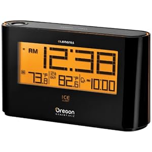 Atomic Projection Alarm Clock with Indoor/ Outdoor Thermometer. Simple and essential. The "Elements" collection emphasizes the simple and the essential in home accessories. A simple design, easy to read and operate, they are of great value, and essential to daily living both indoors and outdoors. Ranging from a thermometer clock to a multi-functional weather station, they have it all. A large, clear LCD screen displays the precise Atomic time and the current indoor and outdoor temperature. Project the time and temperature on your ceiling or wall for easy night viewing. Features: Automatically sets itself to the U.S. Atomic Clock and adjusts for Daylight Savings Time. Projects time, temperature, and alarm status on any surface. Daily alarm with crescendo and snooze function. Backlight for easy viewing in lowlight conditions.